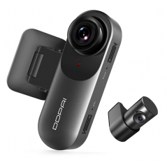 Duální širokoúhlý kamerový systém průběžně sleduje dění před vozidlem i za ním, takže zachytí všechny chodce a vozidla v okolí. Díky úplnému vizuálnímu záznamu máte vždy po ruce jasný důkazní materiál a jste lépe chráněni před případnými nehodami nebo spory o odpovědnost. Širokoúhlý objektiv přední kamery se záběrem 140° pokrývá celou vozovku bez deformujícího „rybího oka“. Lze ji navíc nacvaknout do držáku tak, aby snímala buď dění před autem na vozovce, nebo dění v autě. Zadní kameru je možné nastavit pod úhlem 360°, aby snímala libovolný obraz v zorném úhlu 125°.