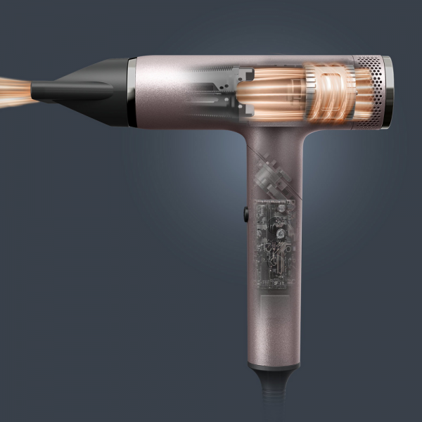 - Vysokorychlostní motor s příkonem 1 700 W zajišťuje silný proud vzduchu pro rychlé a efektivní sušení vlasů.