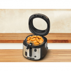 - Kapacita až 1,2 kg potravin a objem oleje 2,1 l umožňují přípravu jídel pro více osob najednou.