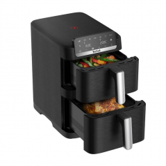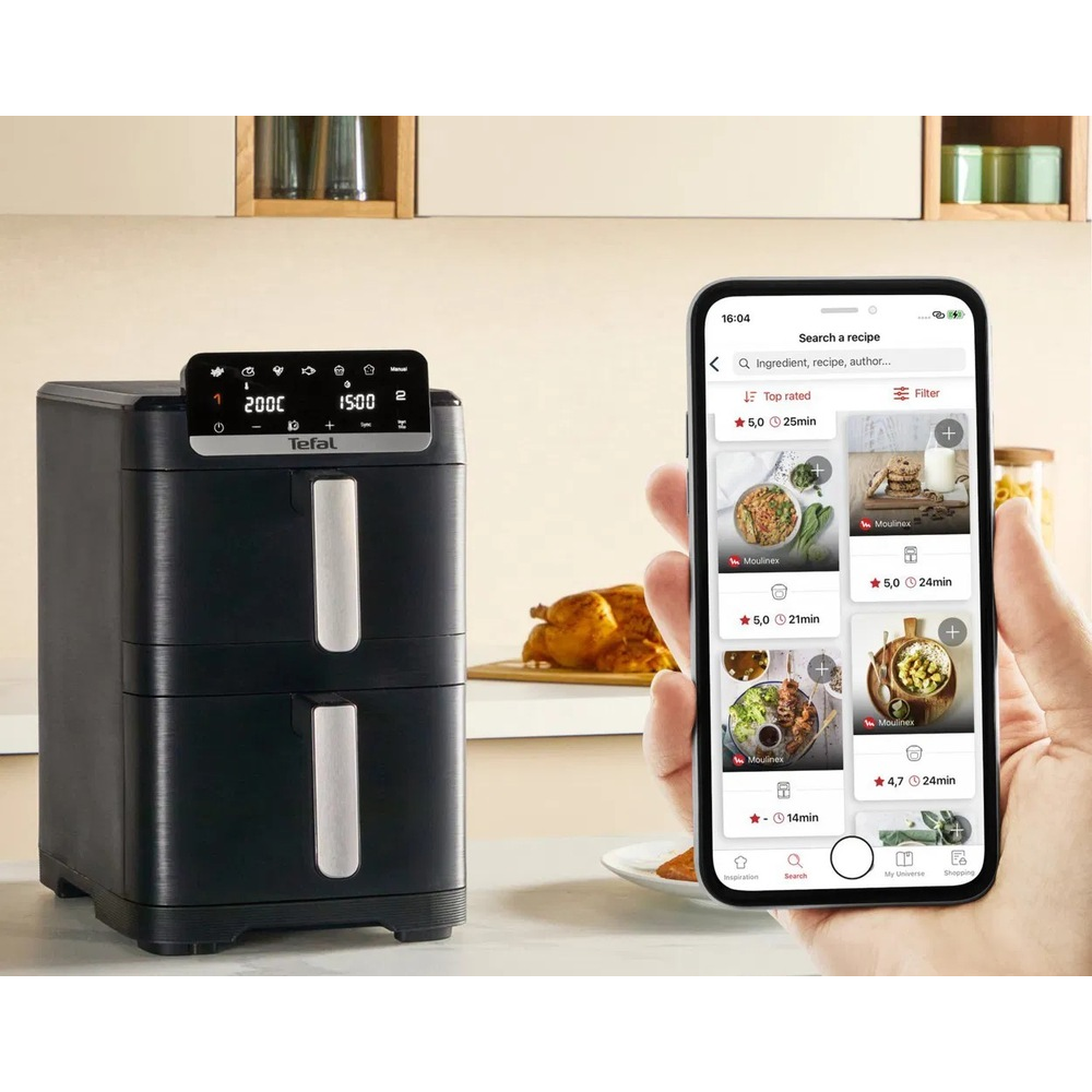 Tefal Easy Fry Crispy Stack přináší efektivní a prostorově úsporné řešení pro moderní kuchyni. Díky dvěma samostatným košům, vysokému výkonu a chytrým funkcím umožňuje připravit kompletní menu najednou – rychle, rovnoměrně a s minimem tuku.