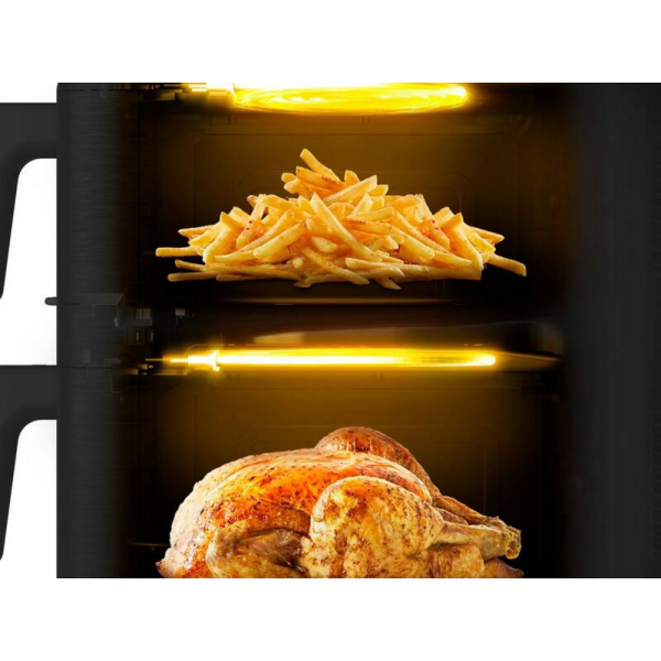 - Speciální technologie zajišťuje cirkulaci horkého vzduchu pro rovnoměrné a křupavé výsledky.