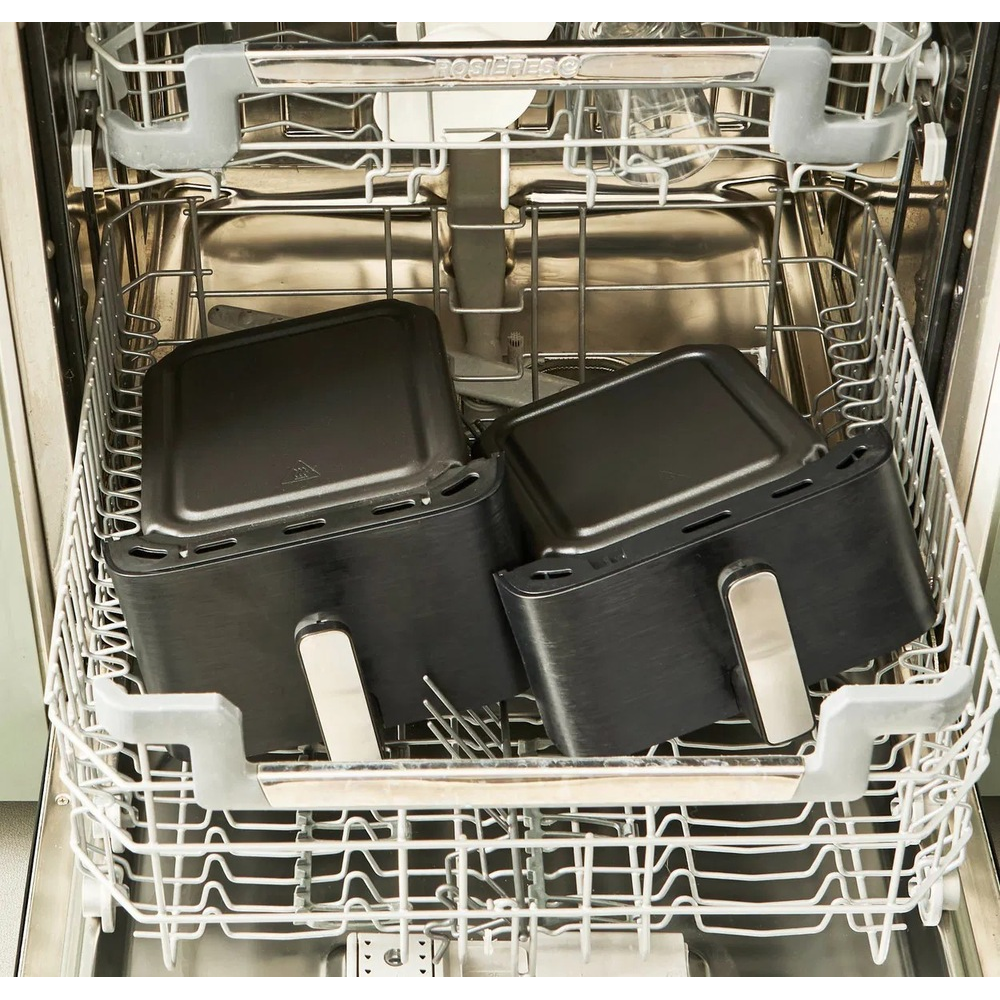 Horkovzdušná fritéza 2700 W, objem 10 l (4 l + 6 l), 6 programů, duální koše, synchronizace vaření, dotykový displej a technologie EvenFry pro křupavé výsledky.