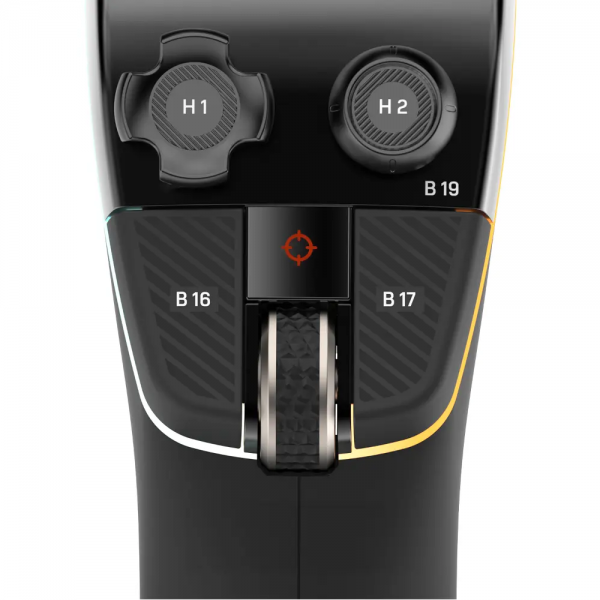 Základna ovladače nabízí přehledné a ergonomicky rozmístěné tlačítka, páčky a přepínače. Díky širokým možnostem konfigurace snadno nastavíte letové funkce, kameru i speciální prvky používané v bojových či vesmírných simulátorech.