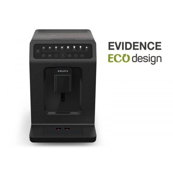 KRUPS Evidence Eco je vyroben z 52 % z recyklovaných plastů a obalového materiálu, čímž snižuje tvorbu CO2 při výrobě. Při jeho likvidaci navíc můžete zpětně recyklovat až 84 % materiálu. Plnoautomatický kávovar s 15barovým čerpadlem na jeden dotyk připraví 8 přednastavených nápojů – espresso, ristretto, cappuccino i porci horké vody na čaj, přičemž díky funkci One-Touch Double Cup zvládne připravit dva šálky vybraných nápojů současně. Technologie Quattro Force automaticky dolaďuje mletí, pěchování a extrakci, aby nápoj vždy chutnal stejně, a po každém cyklu spustí program Auto Clean. Kónický mlýnek z nerezové oceli nabízí pět stupňů hrubosti, k tomu si dle své preference můžete vybírat ze tří úrovní teploty a volitelné intenzity. Nejchutnější kombinaci těchto parametrů si můžete uložit do vlastních receptů a při příští přípravě je kávovar vyvolá jediným dotykem. Hadičkový systém nasaje mléko přímo z kartonu či karafy, vytvoří hustou pěnu a poté se automaticky propláchne – stačí opláchnout samotnou hadičku. Velký dotykový panel s barevnými ikonami a OLED displejem vede uživatele krok za krokem, výškově nastavitelná výpusť pojme i vysoké sklenice a úsporný režim snižuje spotřebu energie, když kávovar zrovna nepracuje.