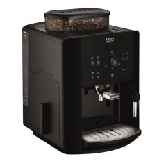 Automatický kávovar Krups Arabica EA8110 s tlakem 15 bar, kovovým mlýnkem se 3 stupni mletí a zásobníkem na zrnkovou kávu 260 g. Nastavení síly, teploty a množství kávy, příprava 2 šálků najednou, parní tryska, nádržka 1,7 l, příkon 1450 W.