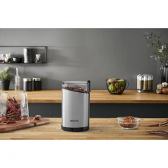 Kompaktní mlýnek Krups s výkonem 200 W, nerezovými noži a kapacitou 85 g zvládne kávu, koření i bylinky rychle a bez námahy.