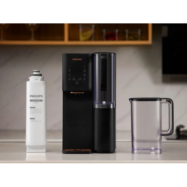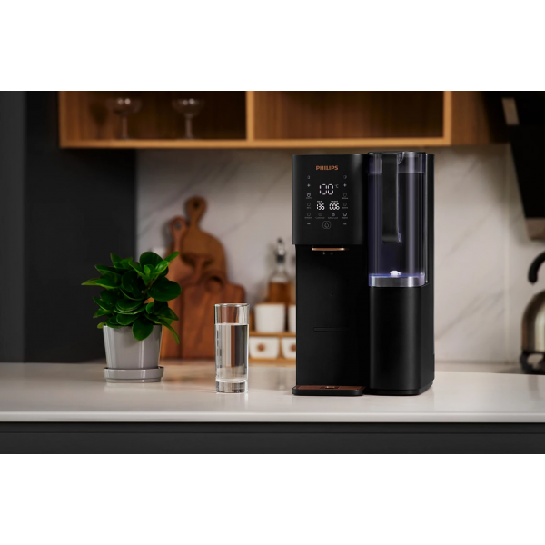Philips ADD6920BK je moderní výdejník s reverzní osmózou zajištěnou technologií Aquaporin Inside®. Do vašich sklenic dodá křišťálově čistou vodu o pokojové či horké teplotě během několika vteřin. Biomimetická membrána s proteiny aquaporin filtruje až na úroveň 0,0001 mikronu a účinně odstraňuje široké spektrum nežádoucích látek včetně bakterií, virů, chloru a fluoridů. Celkem odkáže odstranit až 110 druhlů škodlivých látek. Výsledkem je čistá voda s čerstvou chutí vhodná na pití, vaření i přípravu nápojů.