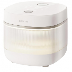 Moderní průhledné tělo s jemným osvětlením vytváří příjemnou atmosféru během vaření. Podsvícení signalizuje aktuální stav přístroje – vaření, udržování teploty nebo ukončení programu. Díky kompaktním rozměrům se rýžovar vejde i do menší kuchyně.