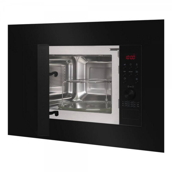 Vestavná mikrovlnná trouba Amica TMI 20 BDFB, objem 20 l, výkon 700 W, gril 900 W, 6 úrovní výkonu, 9 programů, LED displej, otočný talíř 24,5 cm, automatické rozmrazování, hlučnost 54 dB.