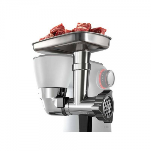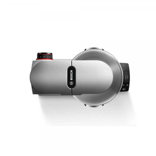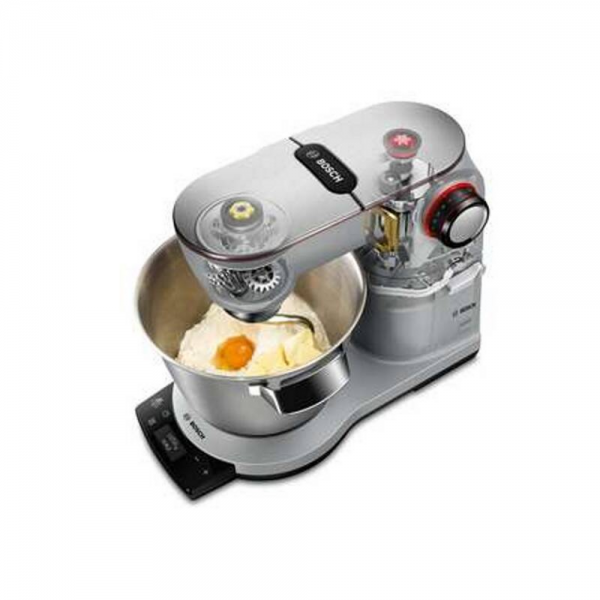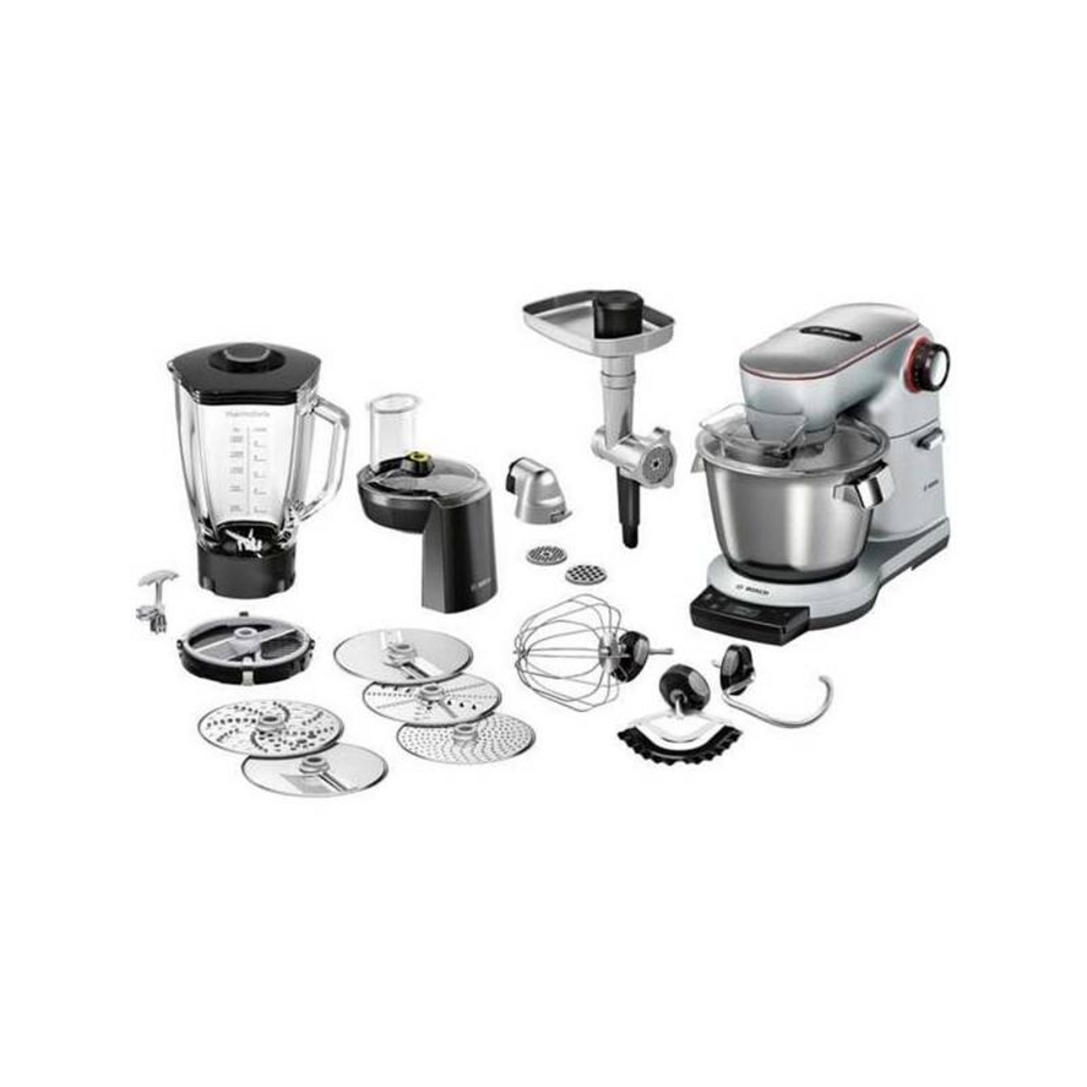 Výkonný kuchyňský robot Bosch MUM9 s příkonem 1500 W, nerezovou mísou 5,5 l, 7 rychlostmi a planetárním mícháním. Nabízí integrovanou váhu, dotykové ovládání a bohaté příslušenství včetně mixéru, mlýnku a krouhače pro maximální všestrannost.