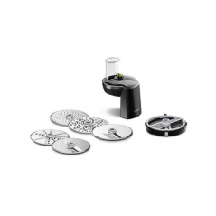 - Robot si poradí s krájením, strouháním i mletím díky průběhovému krouhači a sadě kotoučů.