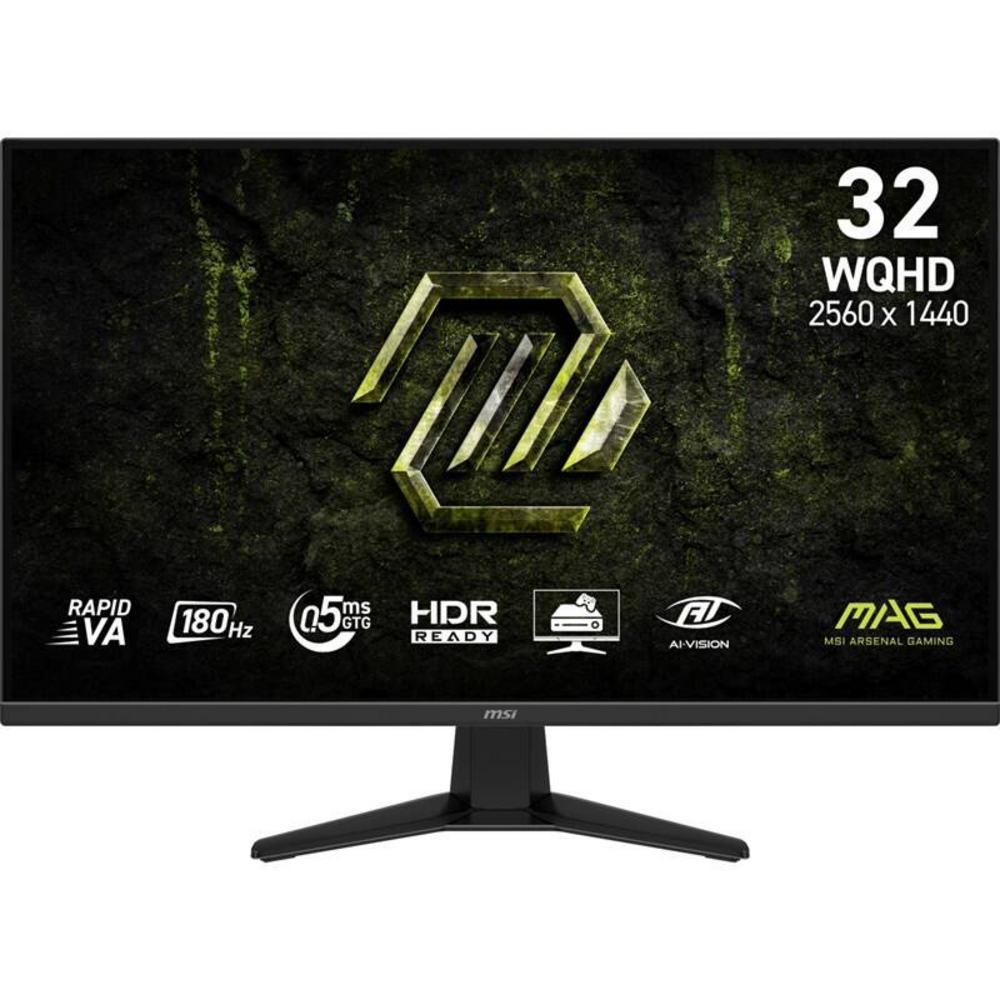 MSI MAG 325QF E18V, 31,5" WQHD (2560 × 1440), Rapid VA panel, 180 Hz, odezva 0,5 ms, HDR, kontrast 3500:1, jas 300 cd/m², HDMI + DisplayPort, Anti-Flicker, Less Blue Light, VESA 100×100, herní monitor.