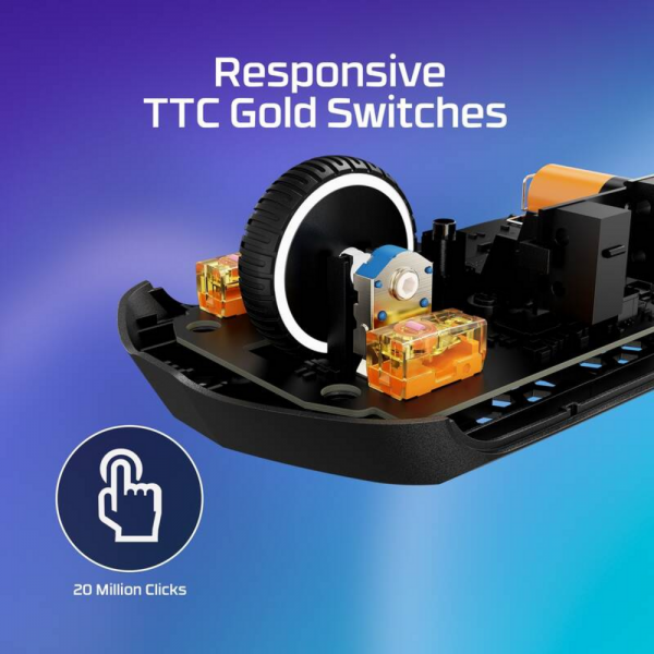 - Každé stisknutí je rychlé a přesné, což zlepšuje reakční dobu. Spínače jsou navrženy pro intenzivní herní nasazení.