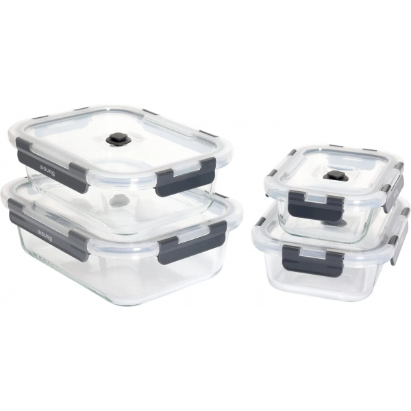 Sada vakuovacích skleněných dóz Siguro 0,37 l + 0,64 l + 1,05 l + 1,52 l + pumpa