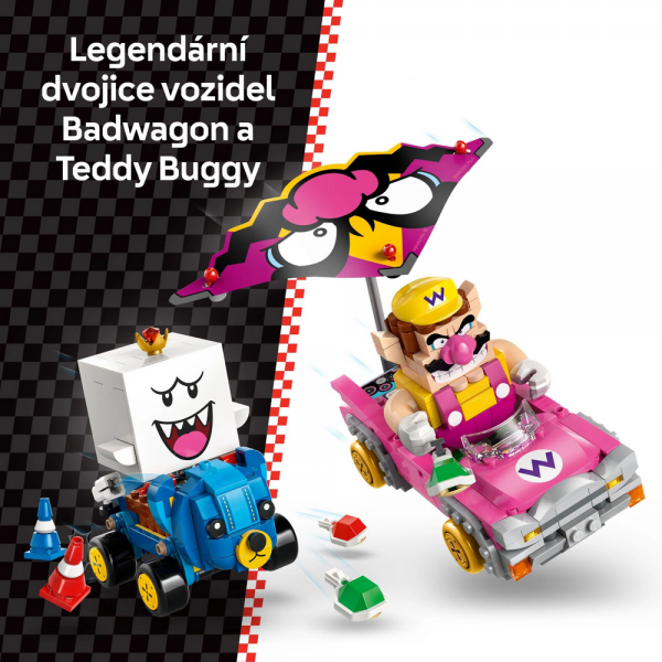 LEGO® Super Mario Mario Kart – Wario a King Boo přináší závodní atmosféru přímo do dětského pokoje. Děti od 8 let si užijí stavění i dynamickou hru plnou soubojů, driftů a překvapení. Set je ideální pro společné hraní s kamarády i sourozenci, podporuje kreativitu, soutěživost i jemnou motoriku – doma i na návštěvě.
