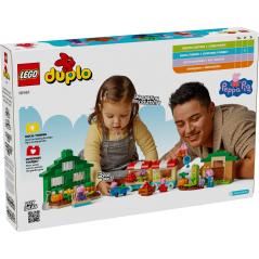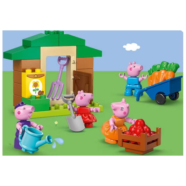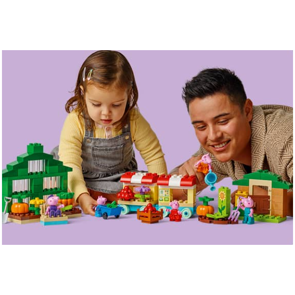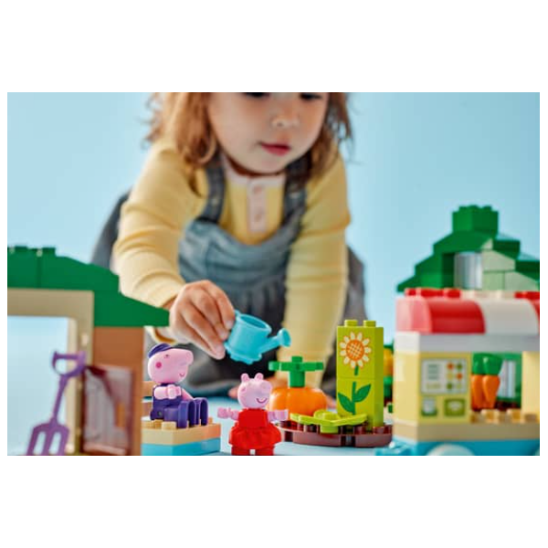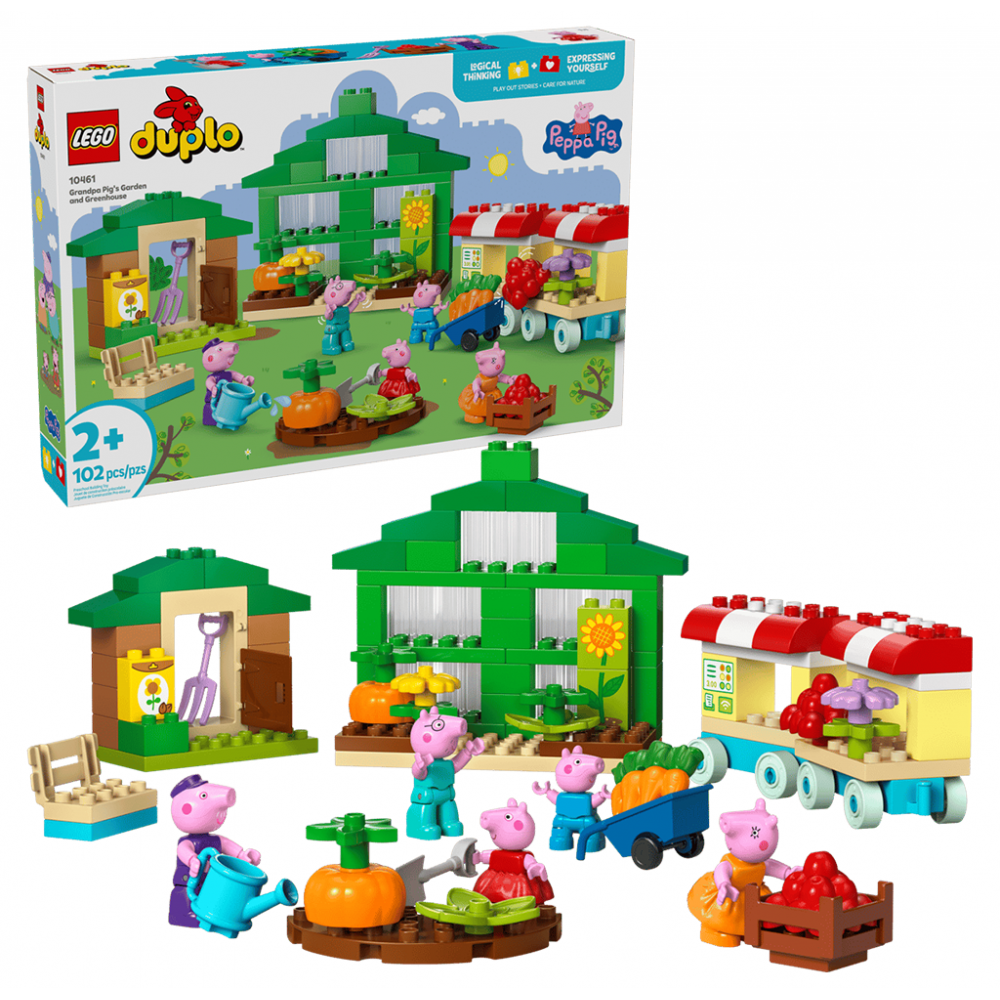 Stavebnice LEGO® DUPLO® Prasátko Peppa – Dědečkova zahrada a skleník přináší dětem od 2 let kreativní hraní inspirované přírodou a oblíbeným seriálem, rozvíjí kreativitu a jemnou motoriku. Stavebnice je inspirovaná oblíbeným seriálem o prasátku Peppa.