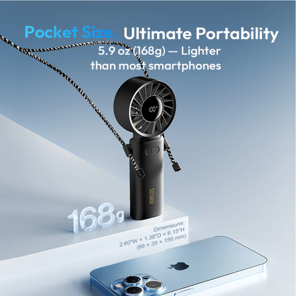 Malý přenosný ventilátor tSothing Foldable Handheld Fan - Engine Z, 3600 mAh, 3 režimy, až 19 hodin chlazení, 15 000 otáček za minutu, 168g.