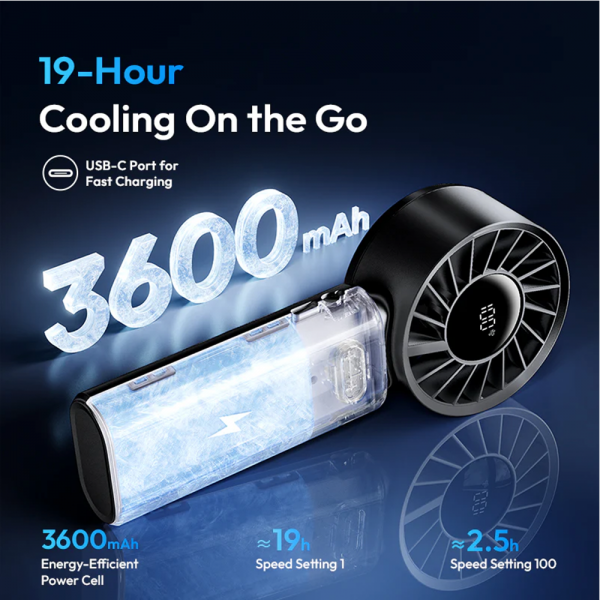 Malý přenosný ventilátor tSothing Foldable Handheld Fan - Engine Z, 3600 mAh, 3 režimy, až 19 hodin chlazení, 15 000 otáček za minutu, 168g.