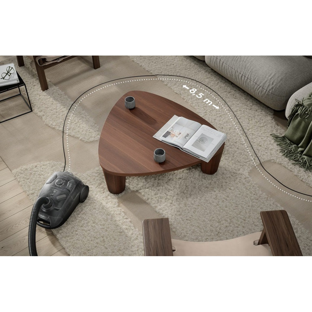 - Akční rádius až 8,5 metru umožňuje pohodlný úklid větších prostor bez častého přepojování kabelu.