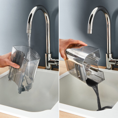 - Odnímatelné nádržky lze jednoduše vyjmout a opláchnout pod vodou. Manipulace je rychlá a pohodlná.